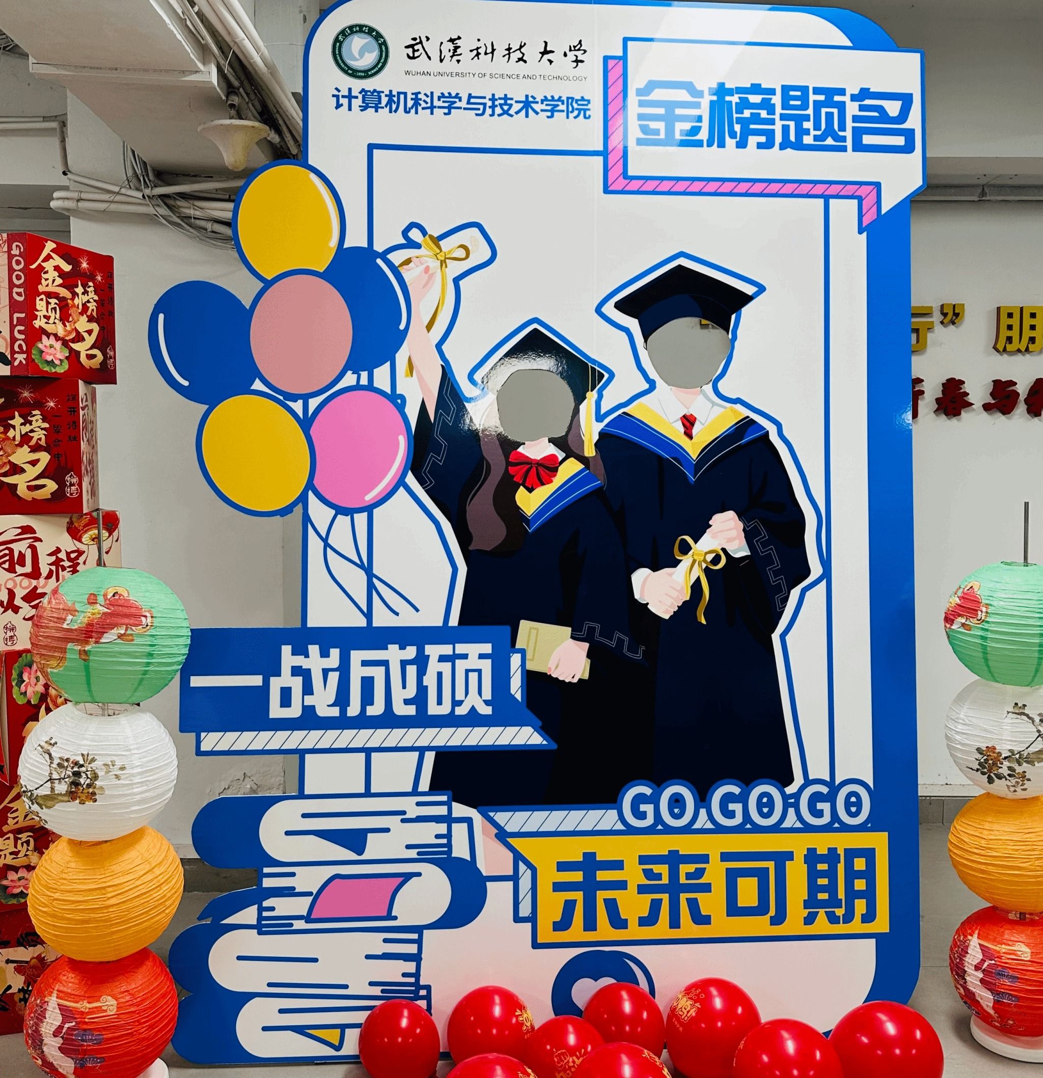 活动现场,志愿者分工协作,细致完成拆封、摆放、整理、封装等环节。学院精心筹备的慰问品兼具实用性与心意:文具袋内含考试必备的中性笔、橡皮等用品;薯愿薯片寓意“薯你心愿”;有传递着乐观向上精神的“加油鸭”玩偶;印刻着“考研上岸,一战成硕”的专属定制可乐;更有学院领导、老师与低年级学子共同手写的加油贺卡,承载着师生间的牵挂与期许。与此同时,曾宪森老师与志愿者们同步前往考研自习室,悬挂“逐梦前行,全力以赴”等励志标语,精心打造“上岸墙”——39所985高校及武汉地区知名高校的校徽醒目陈列,让自习室成为充满希望与力量的备考“能量场”,助力学子们在冲刺阶段凝心聚力。
