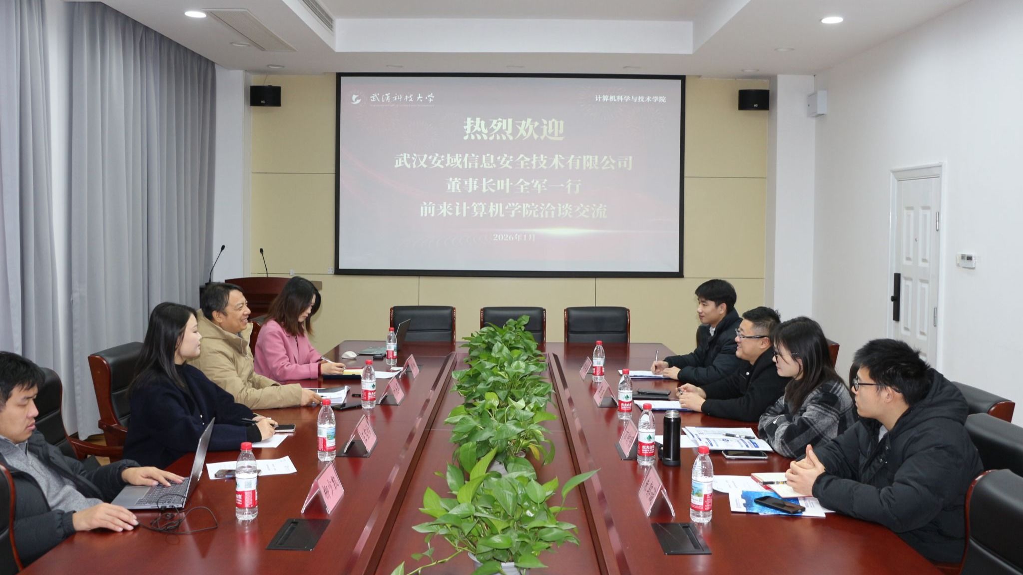 院新闻网讯(通讯员王宇琼 刘博)1月8日上午,计算机学院与武汉安域信息安全技术有限公司校企合作座谈会在黄家湖校区30217会议室顺利举办。武汉安域董事长叶全军、技术部总监柳少凯、培训部总监李玲、人资部总监王宝怡等企业代表,计算机学院党委副书记李苑、本科生辅导员曾宪森、方钟明、研究生辅导员朱郭诚共同出席座谈。