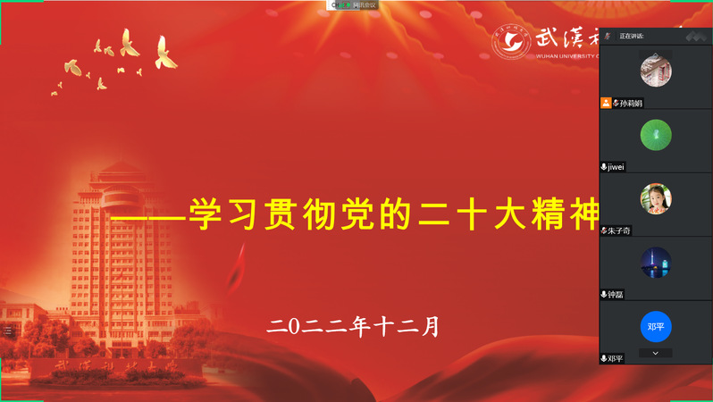 为深入学习贯彻党的二十大精神,号召广大青年坚定不移听党话、跟党走,怀抱梦想又脚踏实地,敢想敢为又善作善成,立志做有理想、敢担当、能吃苦、肯奋斗的新时代好青年。2022年12月19日,沈季伟校长通过“线上”的形式为计算机学院的同学上了一堂特别的“思政课”,在青年学生中传播党的二十大思想,掀起学习二十大精神的热潮!
