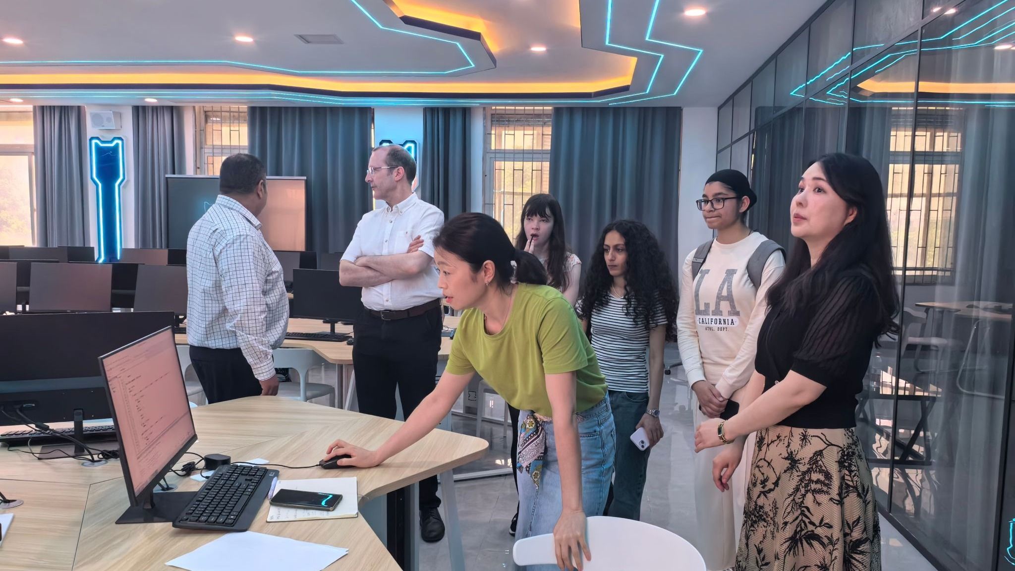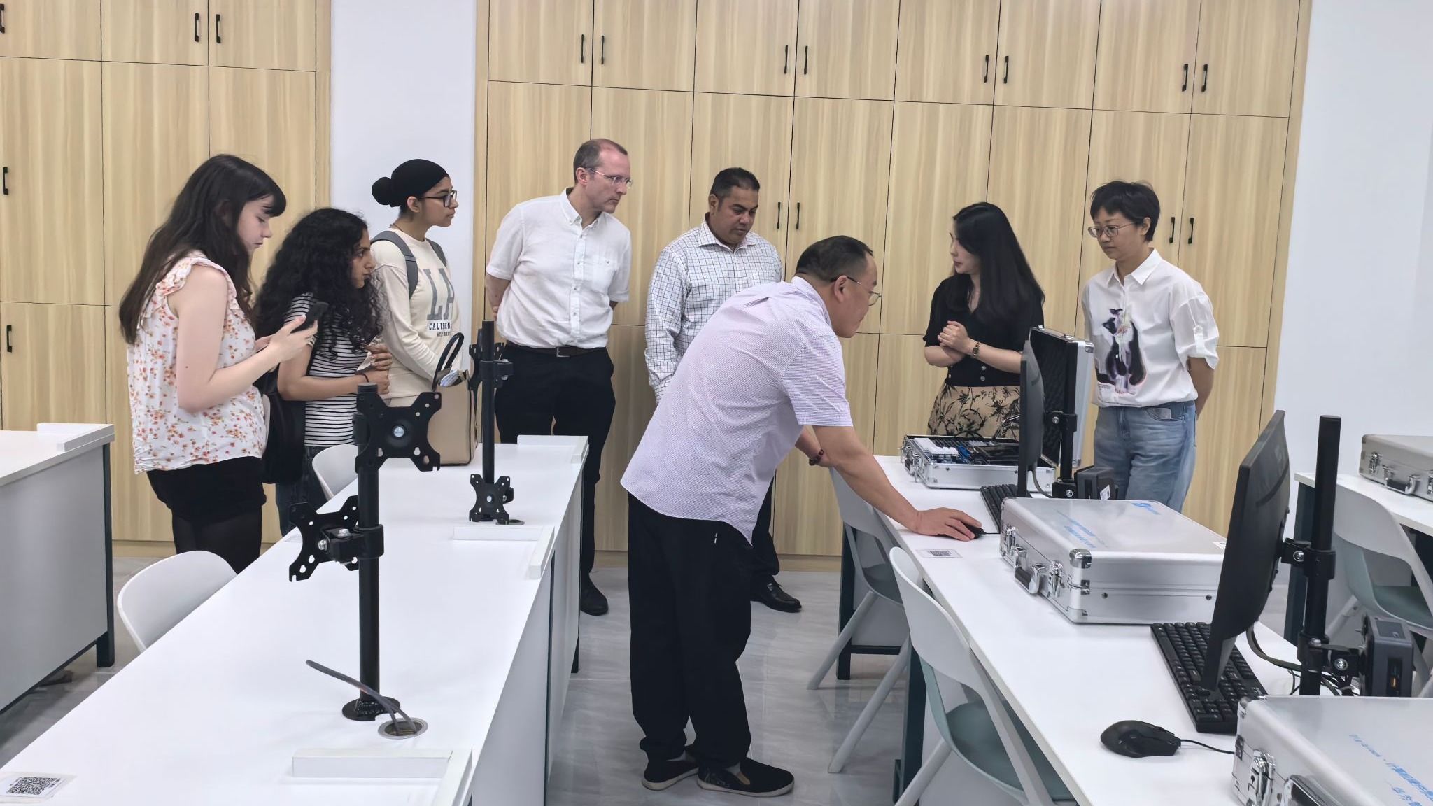 在williamhill中国实验室主任刘星老师的陪同下,英国伯明翰城市大学的师生深入各实验室进行了实地参观;在30101实验室,王晓峰老师详细介绍了虚拟仿真中心的发展历程和独特的实验教学资源;在30501实验室,陈姚节老师向客人展示了基于华为技术的硬件实验箱的实际应用;在30303实验室,谢潇老师带领客人领略了全国产华为生态的软件工程实验室的魅力;最后在30204实验室,胡威老师分享了移动互联实验室的特色项目和学生竞赛的丰硕成果。