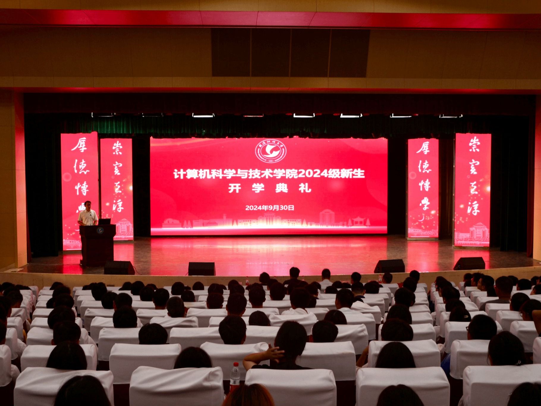 本科生新生代表、计算机科学与技术专业(卓越计划)2024级1班陈亮同学发言,表达了对未来四年大学生活的无限畅想,号召同学们尽快适应大学学习生活,拥抱机遇,迎接挑战,在大学良好的环境中创造自己新的精彩。