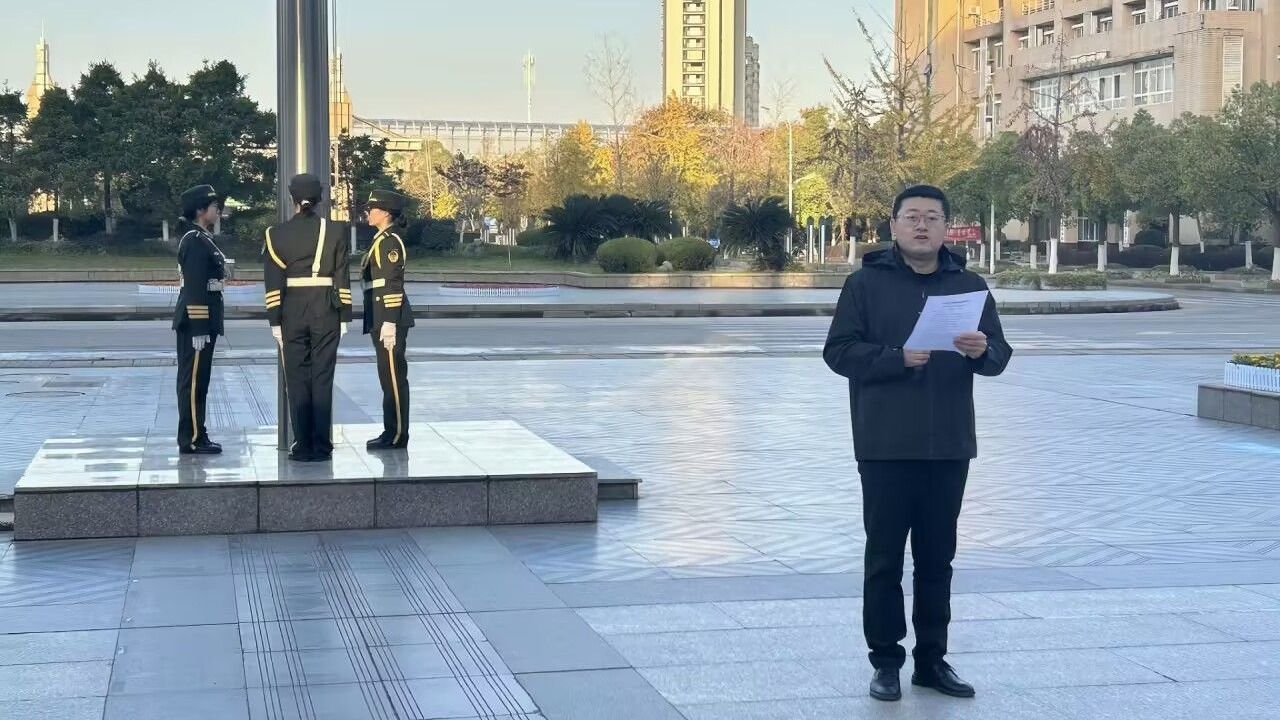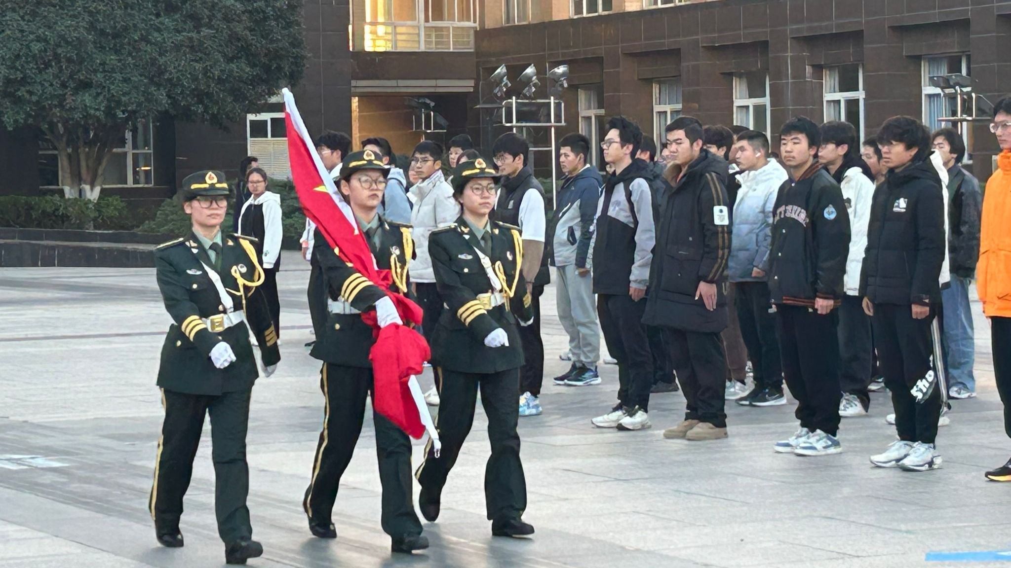 计算机类2412班程泓景同学作国旗下讲话。他结合时代机遇和专业所学,向全体同学发出了“传递创新能量,绽放青春光芒”的鲜明号召。