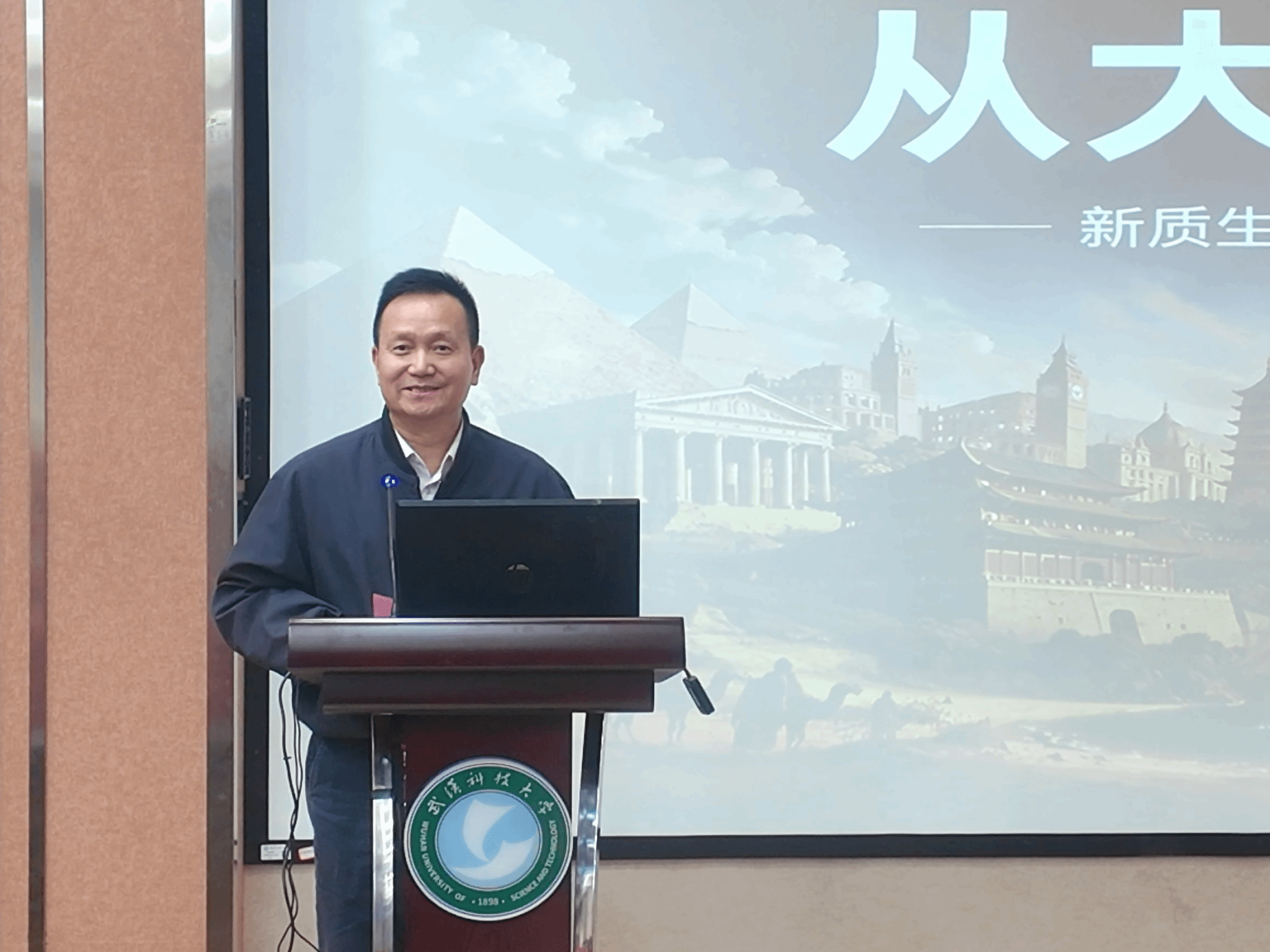 苏光明的报告以500年世界大国兴衰史为切入点,总结出技术革命是核心动力、制度创新是关键保障、文明范式决定长期走向的三大发展规律,对比西方零和博弈崛起模式与中国和合共生的文明基因,系统阐释中国式现代化的独特发展逻辑。他梳理我国从建国初期向苏联学习、改革开放后对美西方开放、到十八大以来推进科技自立自强的三大发展阶段,重点解读新质生产力的核心内涵、三大支柱与发展现状,明确“十五五”时期作为新质生产力发展加速期、文明转型奠基期的历史方位,介绍我国在科技创新、产业升级、高水平制度型开放等领域的核心战略部署。苏光明寄语在场学生:“我们不仅是这场伟大历史变革的见证者,更应该成为参与定义和创造‘新文明’的主体,以青年之姿引领时代潮流!”