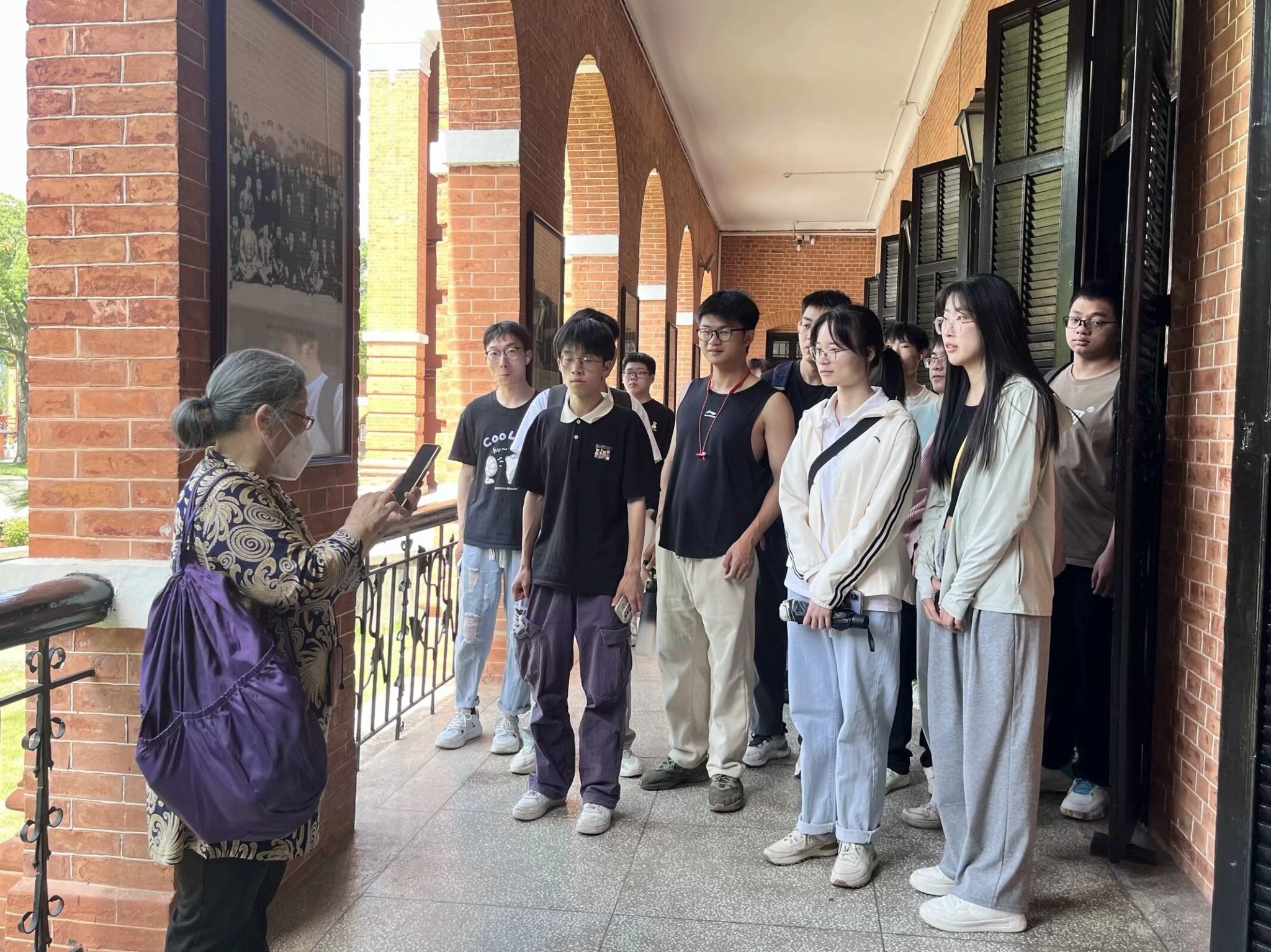 “这个是我老公的爷爷,在抗战期间给国家捐赠过飞机、大炮。今天我带孙子来参观参观,给他讲讲以前的故事。”张奶奶在孙中山访问武汉与各界代表合影前说道。小组成员李佳欢在听完张奶奶的讲解感慨道,老一辈的爱国情怀真是让人动容,没有他们的无私奉献就不会有现在的美好生活。