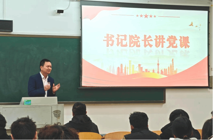 院新闻网讯(通讯员罗洋 王心媛)为深入学习贯彻党的二十届四中全会精神,引导青年学子坚定理想信念、勇担时代重任,12月4日,我院党委书记余淑均在13101教室为我院入党积极分子、拔尖人才实验班本科学生讲授专题党课,旨在激励学子将个人理想融入国家发展大局,以青春之姿投身中国式现代化建设。学院党委副书记李苑、2025级本科生辅导员靳文宗出席本次活动。
