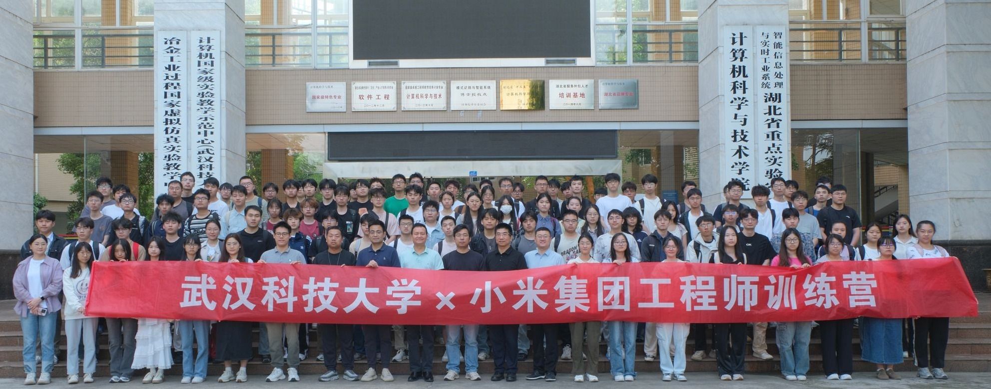 最后,李苑宣布开营仪式圆满结束。开营仪式结束后,小米集团领导、我院领导与参训学生一同前往学院正门处合影留念,标志着我院与小米集团“2025年度校企合作工程师训练营”的正式开营。